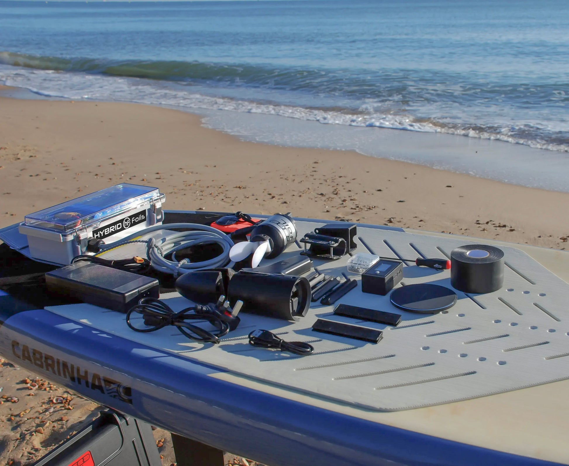 This is the lightest version of the Hybrid Foils foil assist product range and is particularly suited to SUP foiling, low wind wing foiling, prone foiling, and down winding. The powered assist also enables you to drive out to access more remote wave locations.